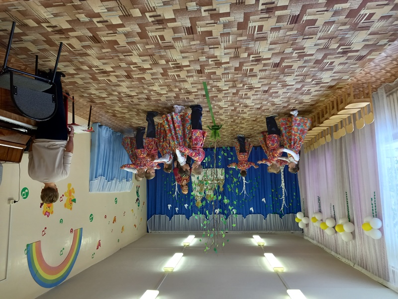 Дети в ярких русских нарядах водили хоровод "Березонька", играли в народные игры "Ручеек", "Плетень", выразительно исполнили танцы "Во поле березка стояла" и "Мы на луг ходили". А в заключение праздника, следуя народному обряду, дети с удовольствием украсили березку лентами и загадали желание.