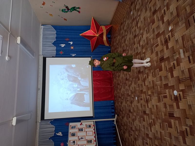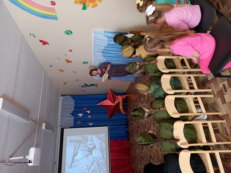 Воспитатели Терехова Елена Леонидовна и Савельева Маргарита Владимировна познакомили детей с фотохроникой военных лет, прочитали письма, которые писали фронтовики своим родным с полей сражений. Дошкольники и педагоги почтили память погибших в Великой Отечественной войне минутой молчания.
