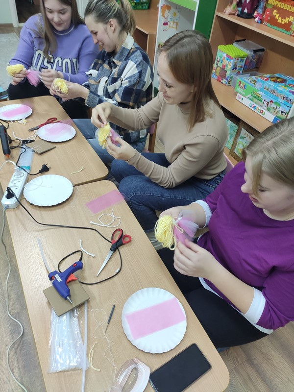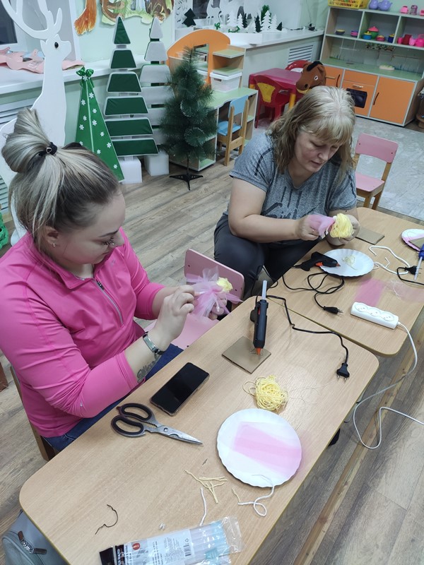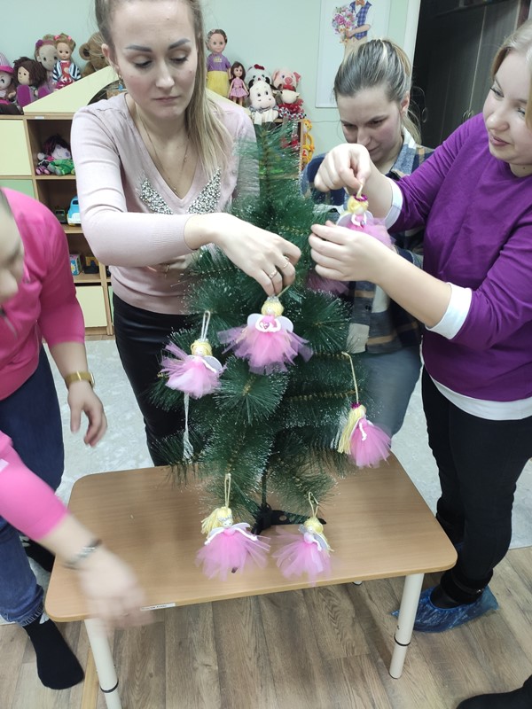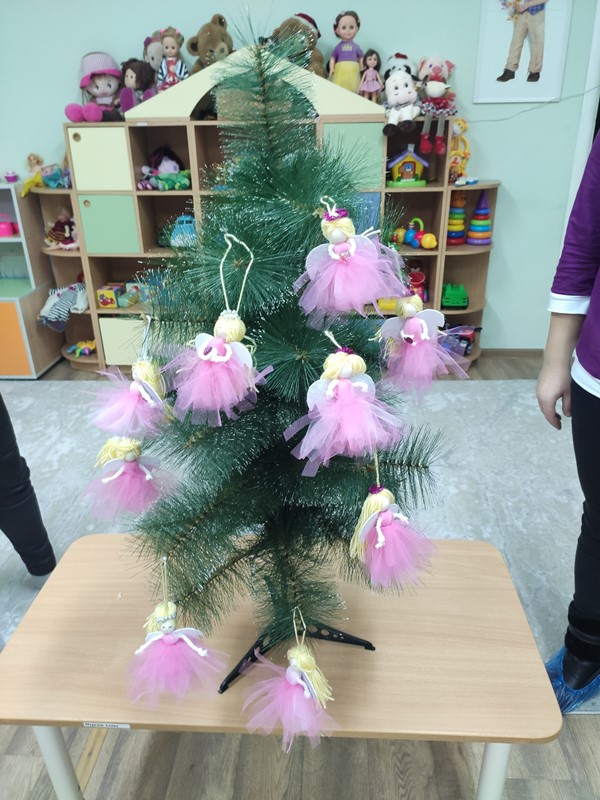 Новогодние праздники всегда ассоциируются с уютом, теплом, радостью, украшением ёлки. Подготовка к нему отнимает много сил, но добавляет приятных забот в создании элементов праздника. Воспитатель 1-й младшей группы №4 Никанорова Елена Владимировна решила помочь мамам разнообразить предновогодние деньки, и предложила мастер – класс по изготовлению рождественского ангела из ниток и фатина.