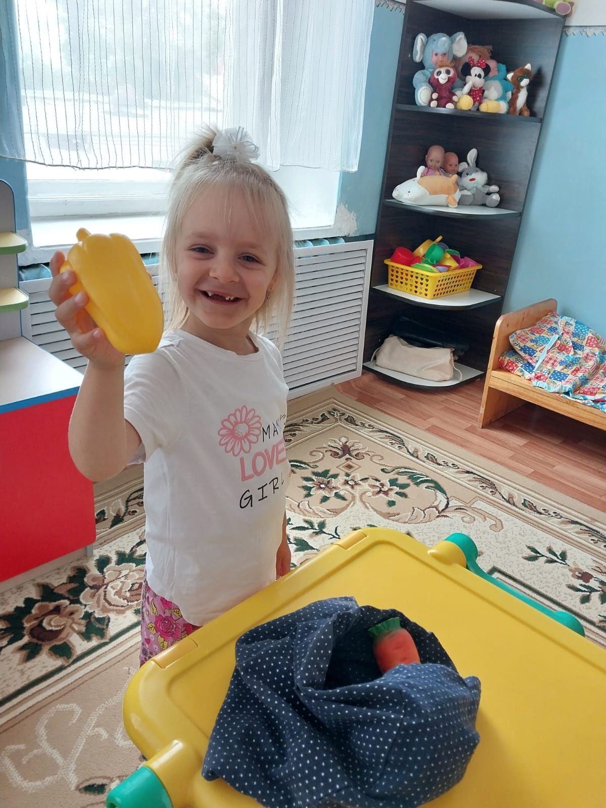 В группе № 5 состоялось мероприятие «Витамины – это полезно». Дети совершили увлекательное путешествие в виртуальную страну Витаминию. В ней они познакомились с продуктами, которые содержат полезные вещества. В ходе занятия ребята отгадывали загадки, играли д.и. «Загадочный мешочек», определяя на ощупь фрукты и овощи.